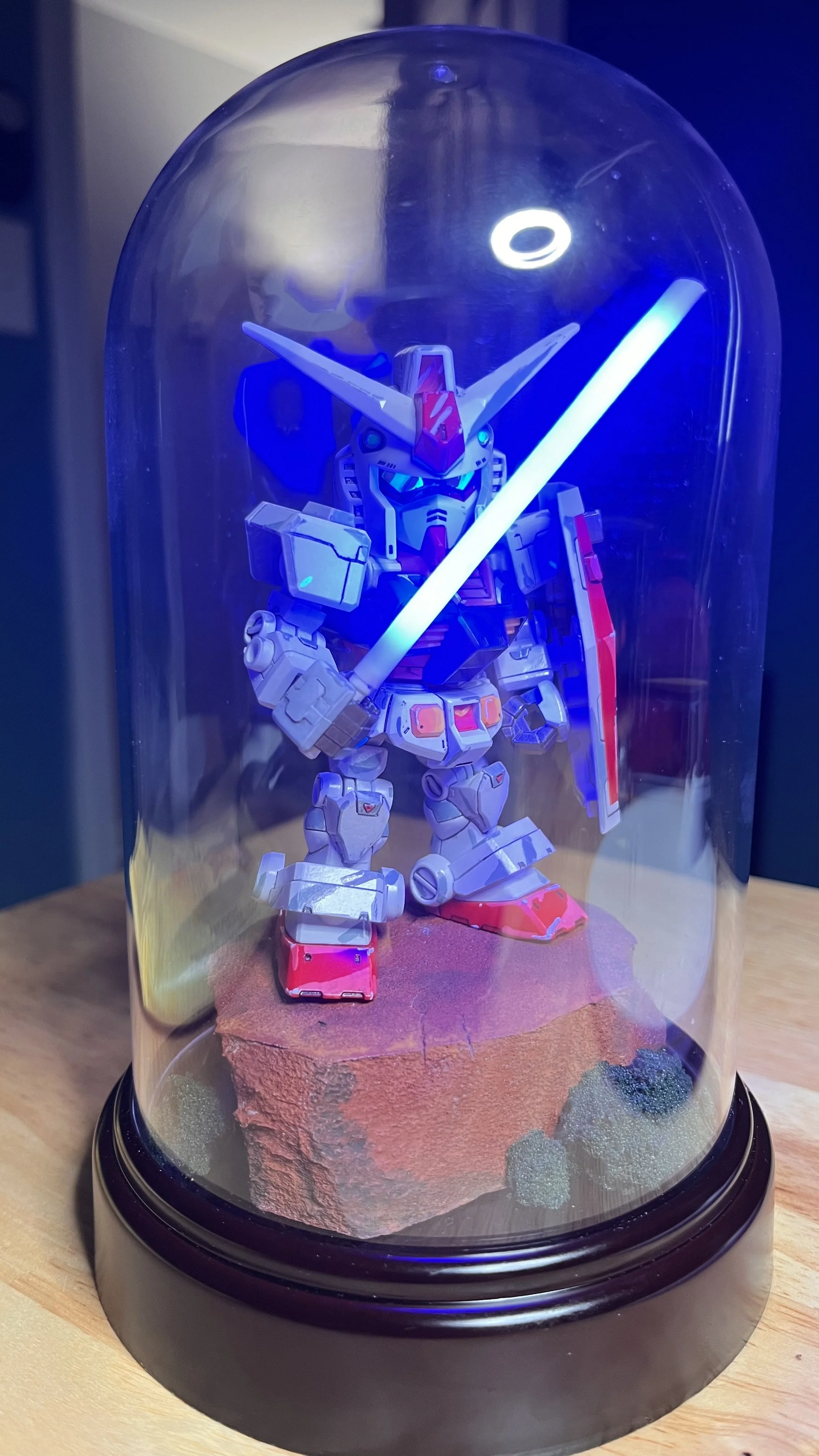 Gundam Model with Custom Paint, Lighting, and Enclosure